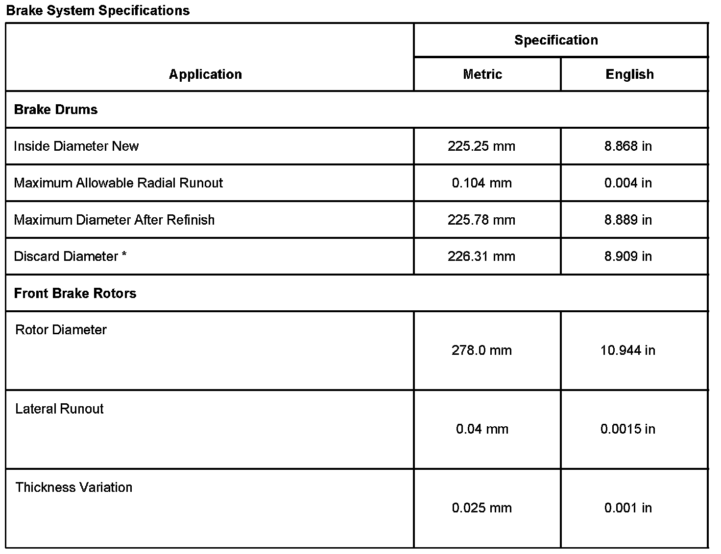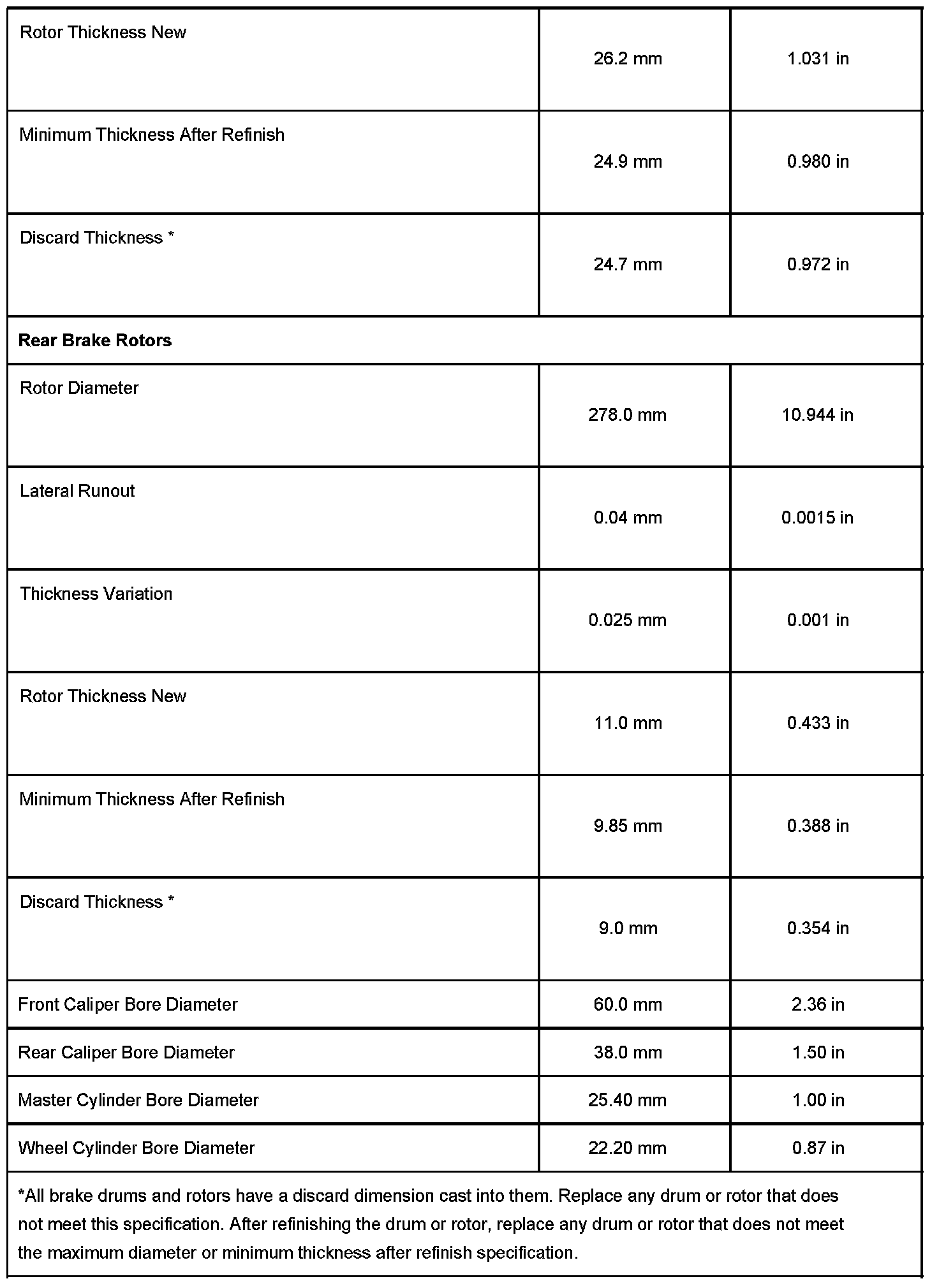 This bulletin is being issued to revise the Brake System Specifications in the Hydraulic Brakes subsection of the Service Manual. Please replace the current information in the Service Manual with the following information.