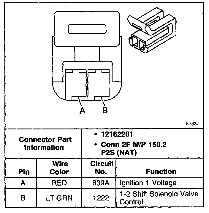 1-2 Shift Solenoid (SS) Valve Connector, Wiring Harness Side