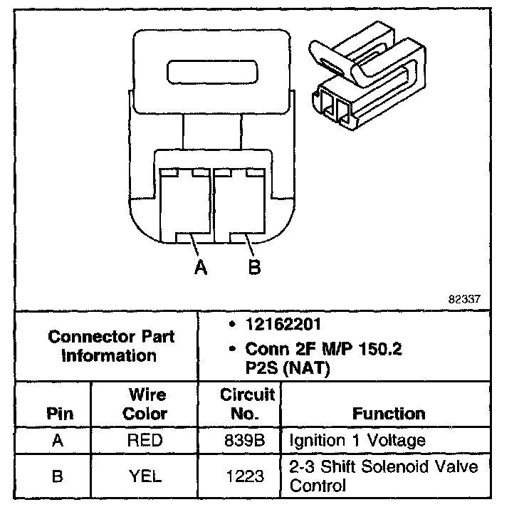 2-3 Shift Solenoid (SS) Valve Connector, Wiring Harness Side: