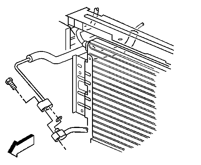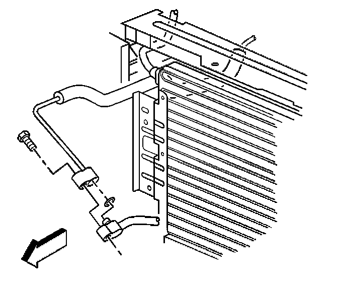 21. Remove the bolt from the evaporator hose to the condenser.