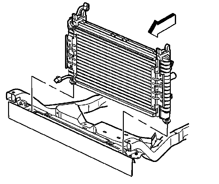 7. Install the radiator, fan, and condenser as an assembly to the vehicle.