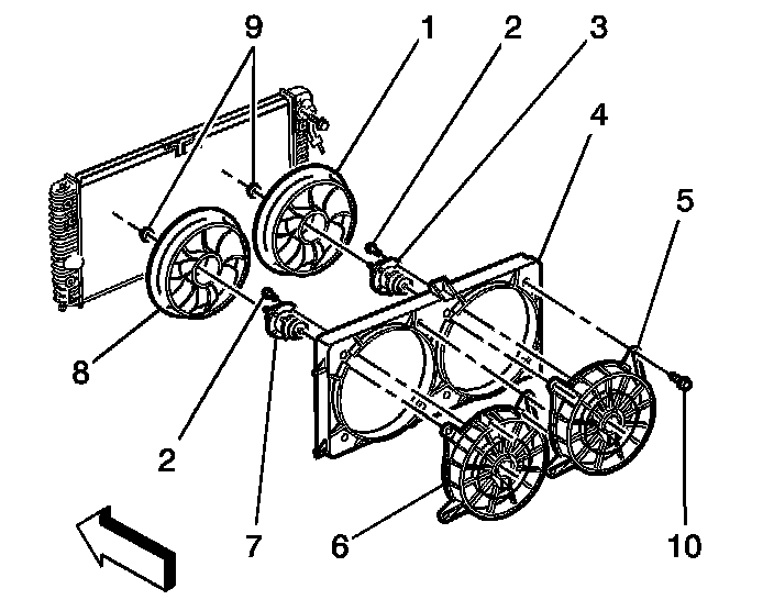Caution: To help avoid personal injury or damage to the vehicle, a bent, cracked, or damaged fan blade housing should always be replaced.