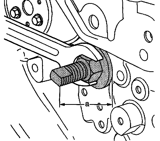 When the J 43650 is properly installed, before removing the bushing, the end of the tool should be 74 - 77 mm (2.91 - 3.03 inch) (a) from the block face.