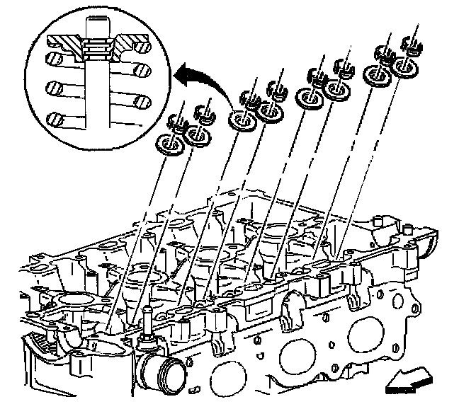 Notice: Do not damage the valve guide. Remove any burrs that have formed at the key groove by chamfering the valve stem with an oil stone or a file.