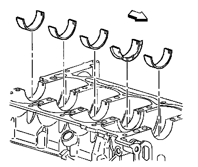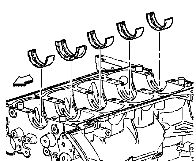 4. Install the lower bearing halves, without grooves, into the lower crankcase. Apply oil to bearing surfaces.