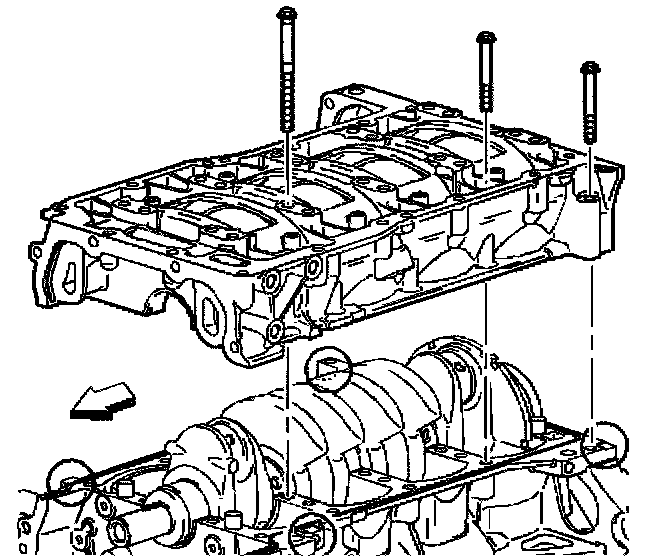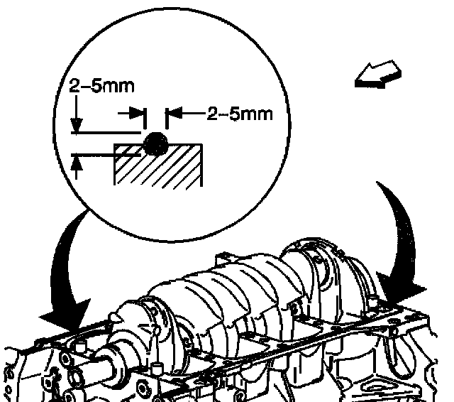 3. Apply sealer GM P/N United States 12346286, GM P/N Canada 10953477 to the surfaces of the engine block to bedplate mating surfaces.
