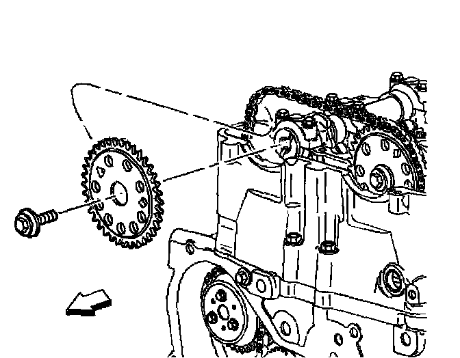 6. Install the exhaust camshaft sprocket and a new bolt loosely onto the exhaust camshaft.