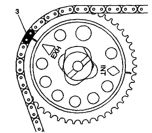 7. Align the timing mark on the sprocket with the silver link (3). Install the bolt finger tight.