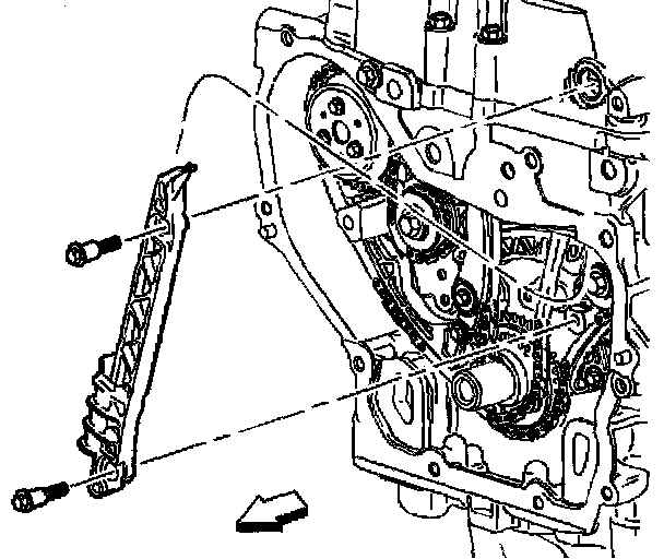 Tighten the fixed timing chain guide bolts to 10 Nm (89 inch lbs.).