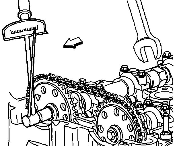 13. Using a 24 mm wrench, engage the hex on the intake camshaft and using a torque wrench, tighten the camshaft sprocket bolt.
