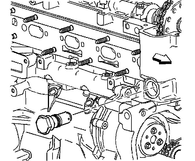 25. Apply sealant GM P/N United States 12345382, GM P/N Canada 10953489 compound to the thread, and Install the timing chain guide bolt access hole plug.