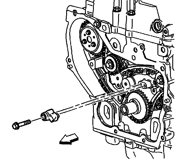 5. Install the adjustable timing chain guide through the opening in the cylinder head and install the adjustable timing chain bolt.
