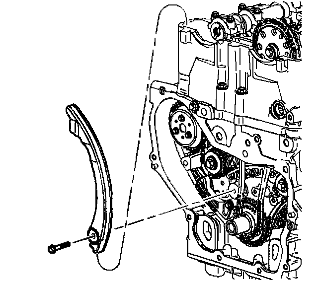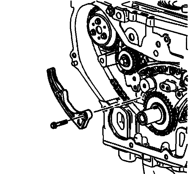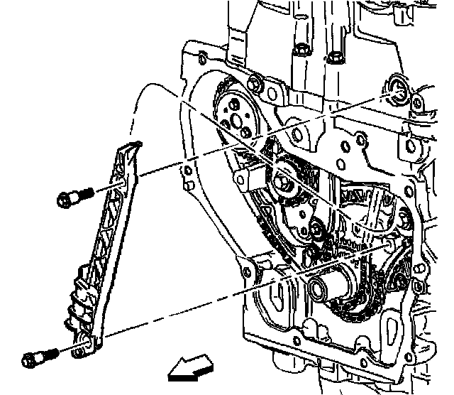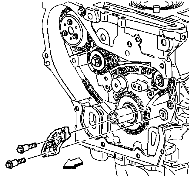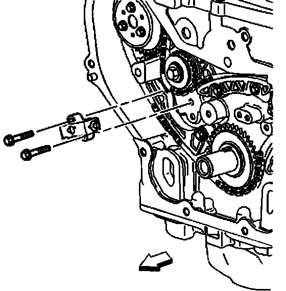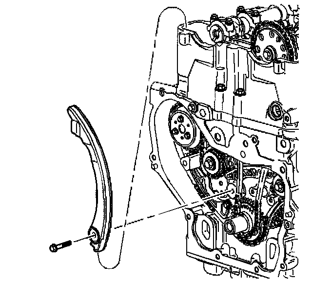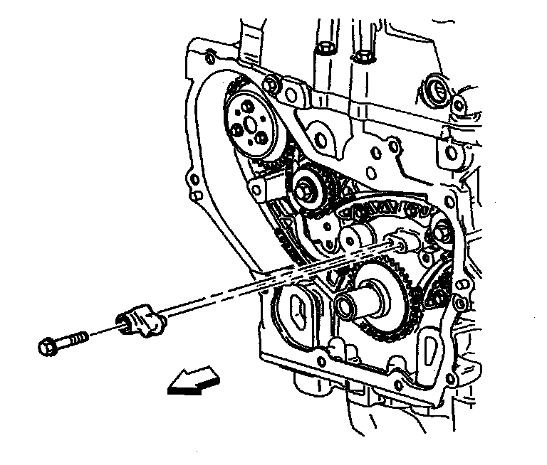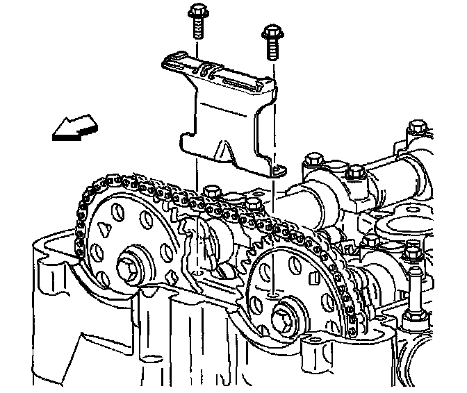Important: The timing chain tensioner must be removed to unload chain tension before the timing chain is removed. If not removed, the timing chain will become cocked and it will be difficult to remove.