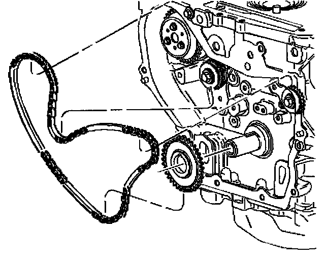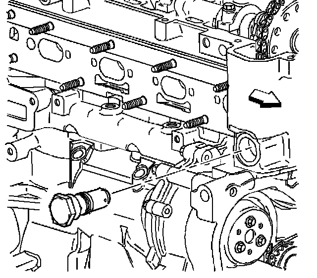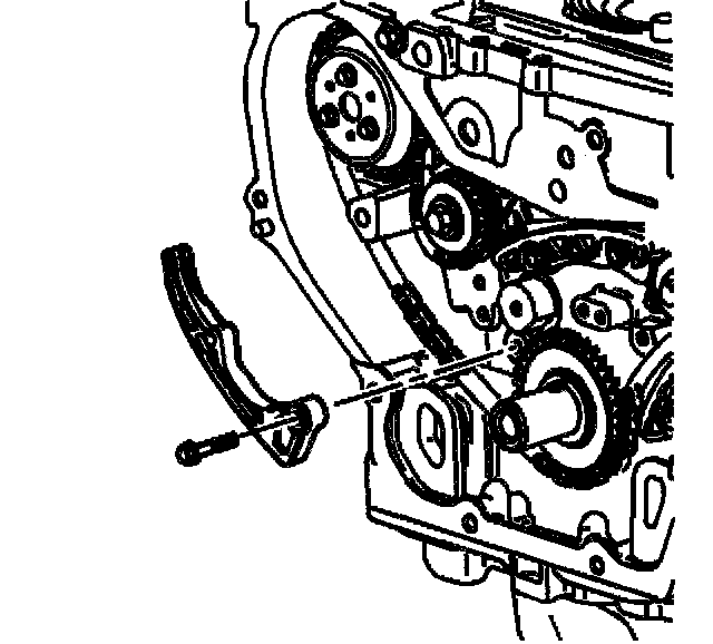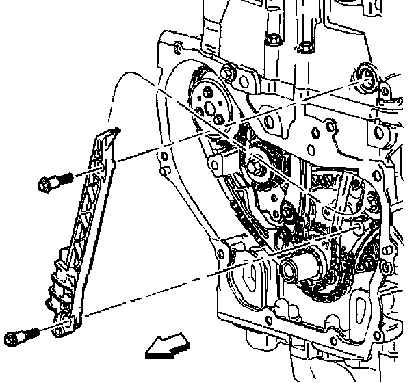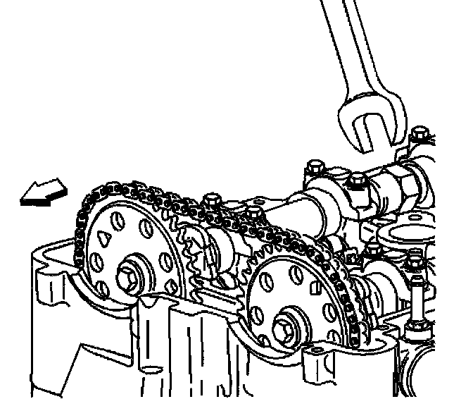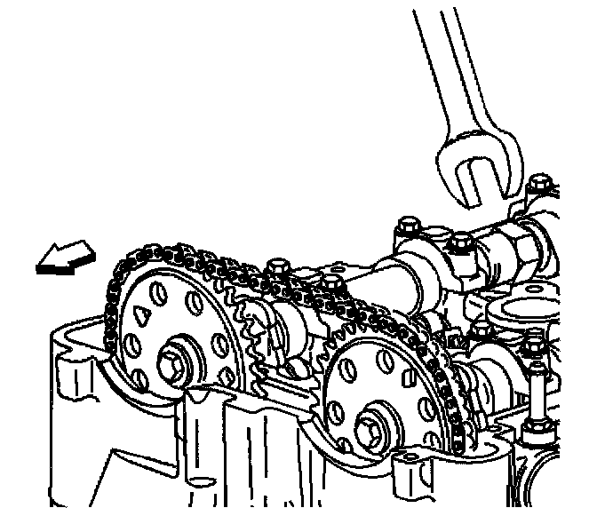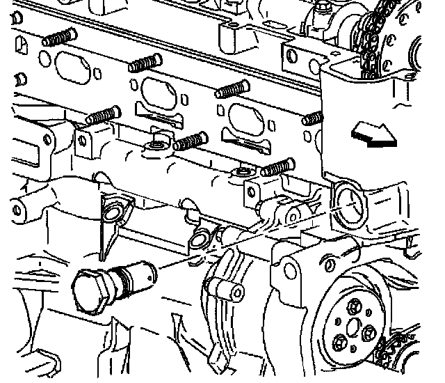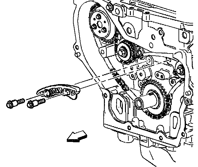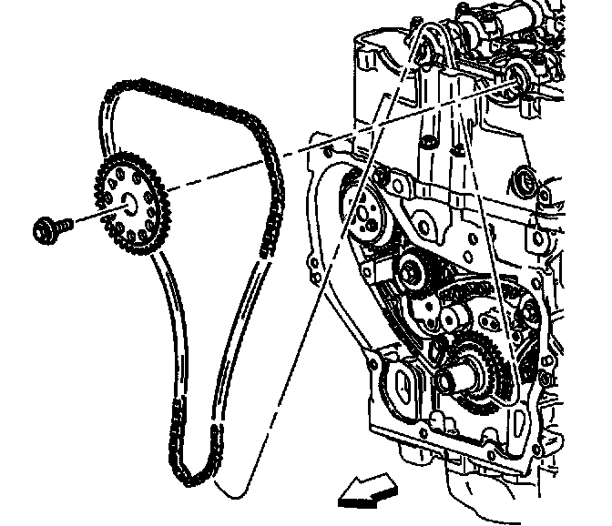 Important: The timing chain tensioner must be removed to unload chain tension before the timing chain is removed. If not removed, the timing chain will become cocked and it will be difficult to remove.