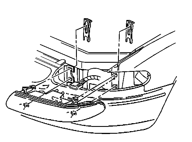 7. Position the headlamp mounting tabs to the slots in the upper fascia support and the fender reinforcement.