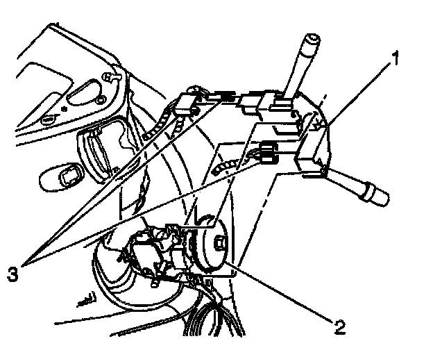4. Disconnect the electrical connectors (3) from the multifunction switch (1).
