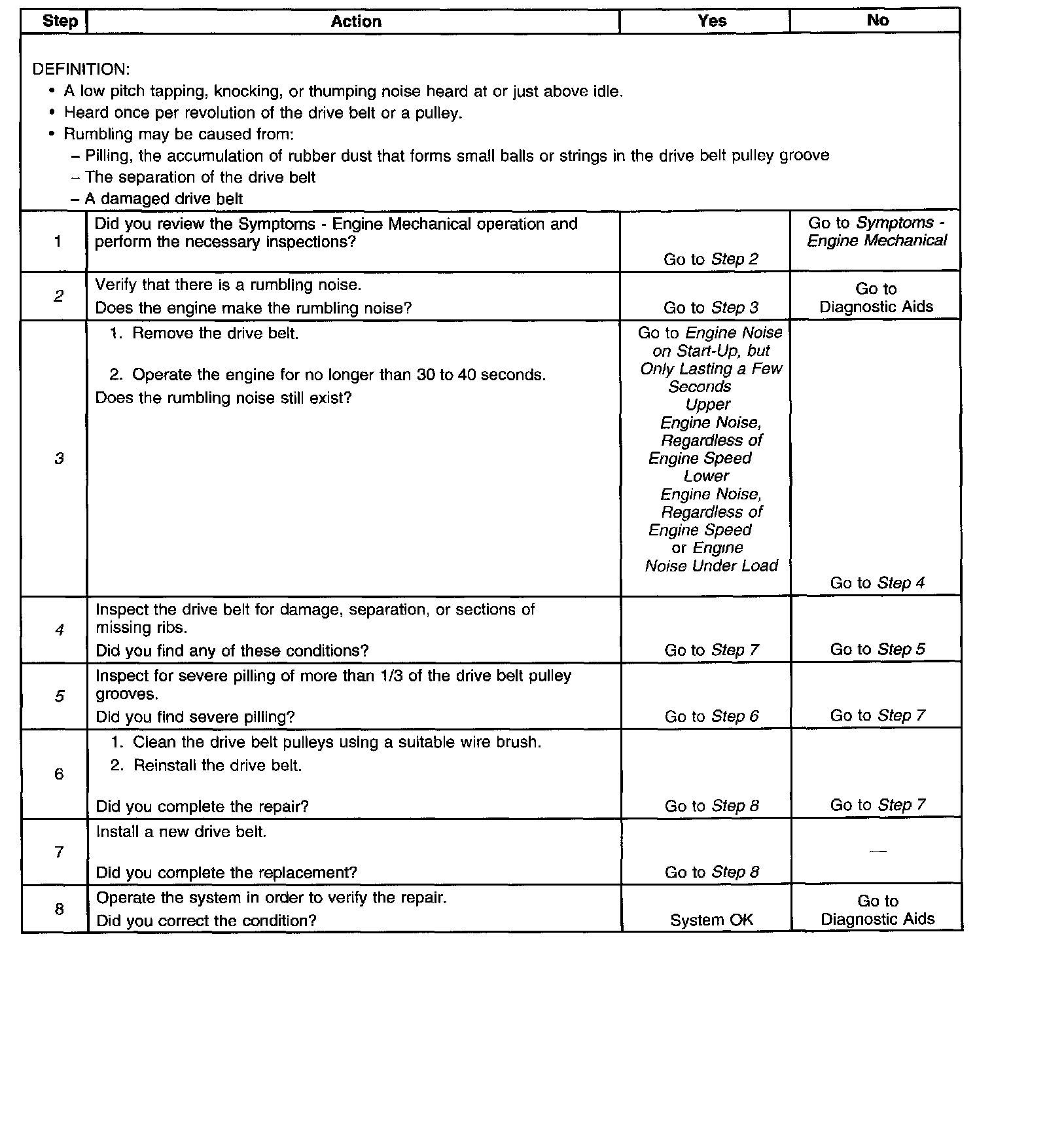 Drive Belt Rumbling DiagnosisDiagnostic Aids