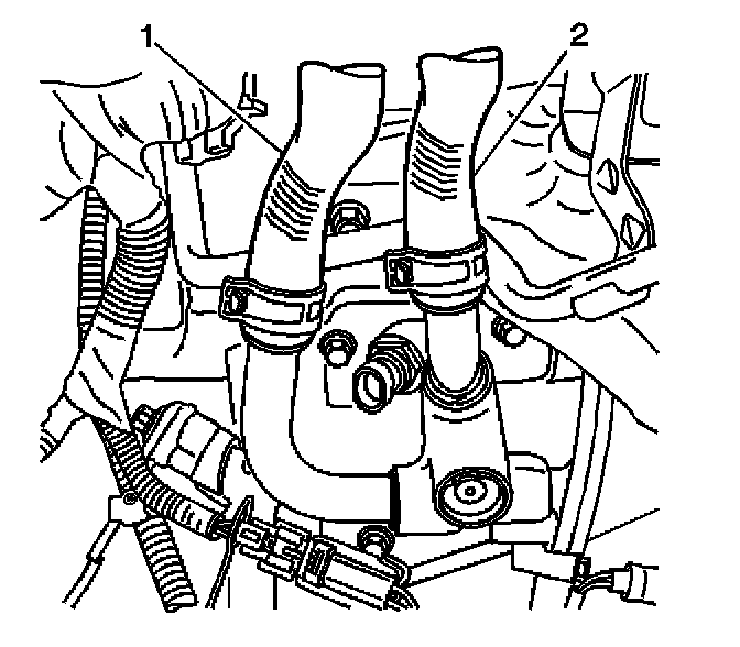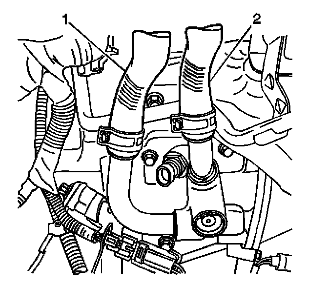 3. Disconnect the outlet heater hose (2) from the engine port.