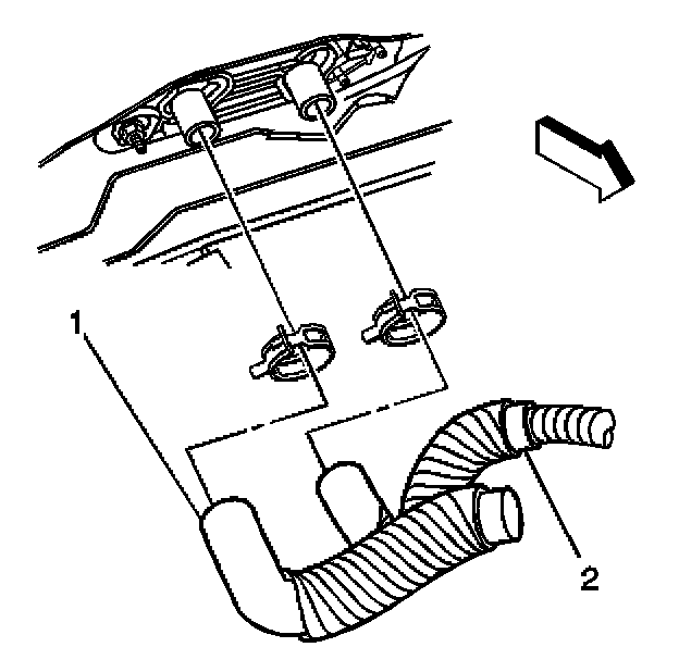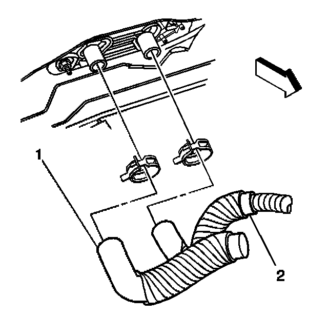 2. Connect the outlet heater hose (1) inlet to the heater core.