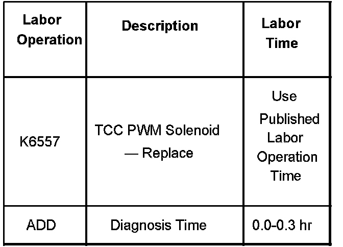 Replace the TCC PWM solenoid using published procedures for the vehicle being serviced.