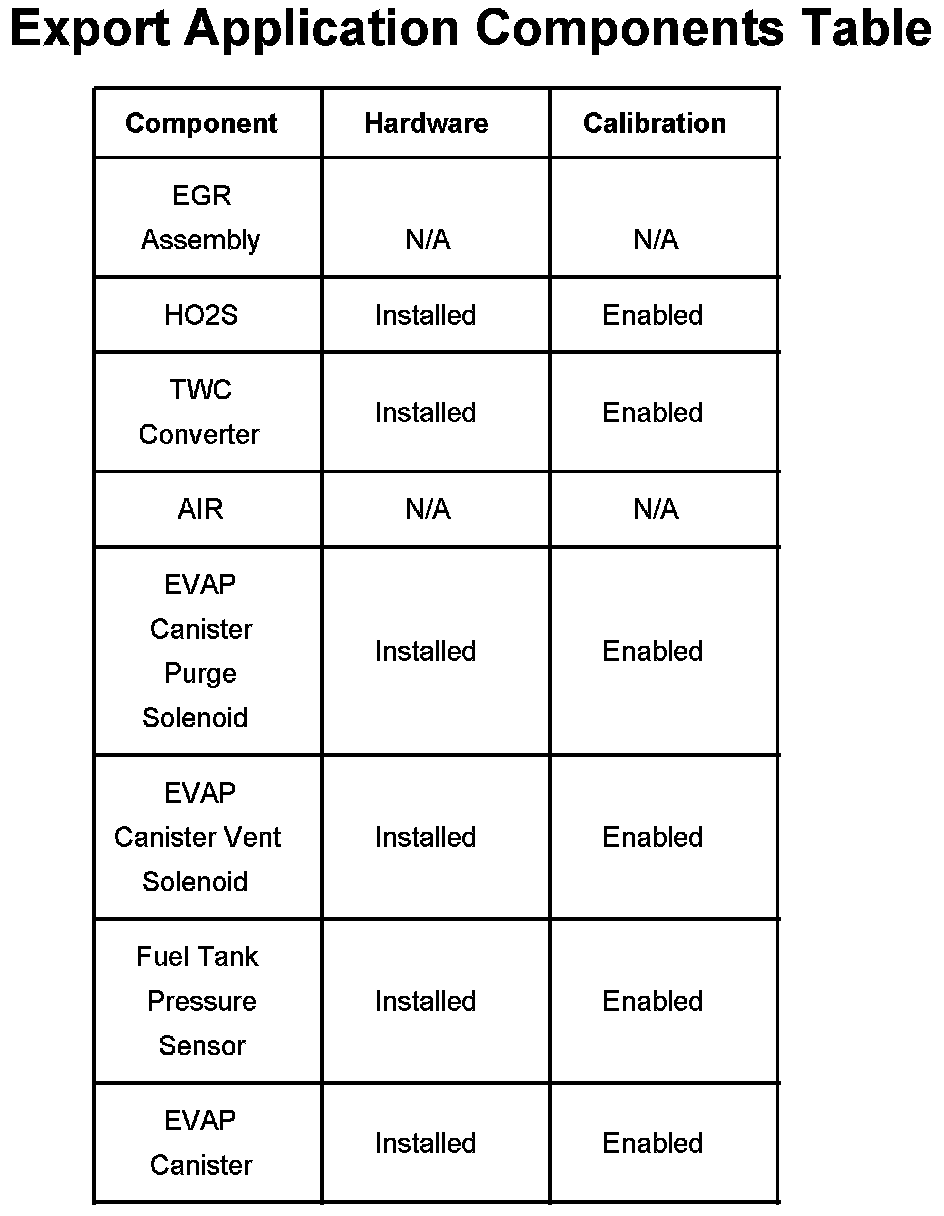 Export Application Components Table: