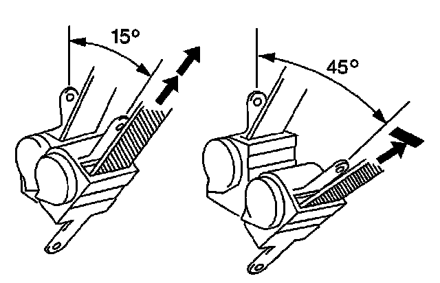 4.3. Verify that the seat belt webbing can be pulled from the retractor at an inclination of 15 degrees or less. Verify that the seat belt webbing cannot be pulled from the retractor at an inclination of 45 degrees or more.
