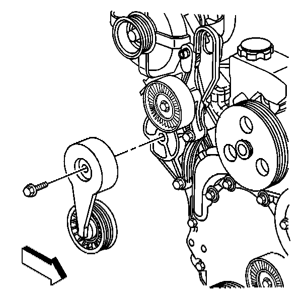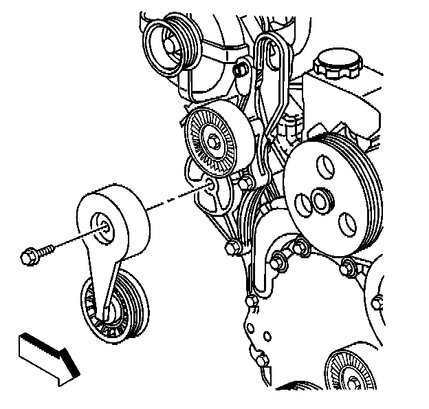 6. Remove the drive belt idler pulley bolt.