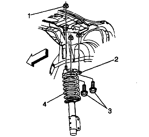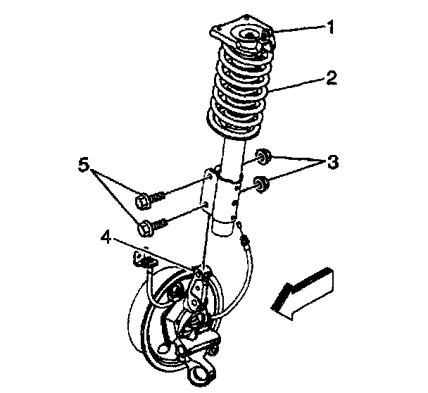 1. Loosely install the strut to knuckle bolts (5) and nuts (3).