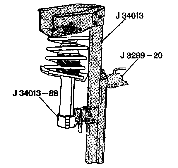 2. Mount the strut assembly into the J 34013-B using the J 34013-88.