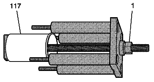 8. Using a ratchet rotate the threaded shaft of EN 45680-851/EN 45680-853 assembly (1) in order to install the cylinder bore liner (117) into the engine block (100).