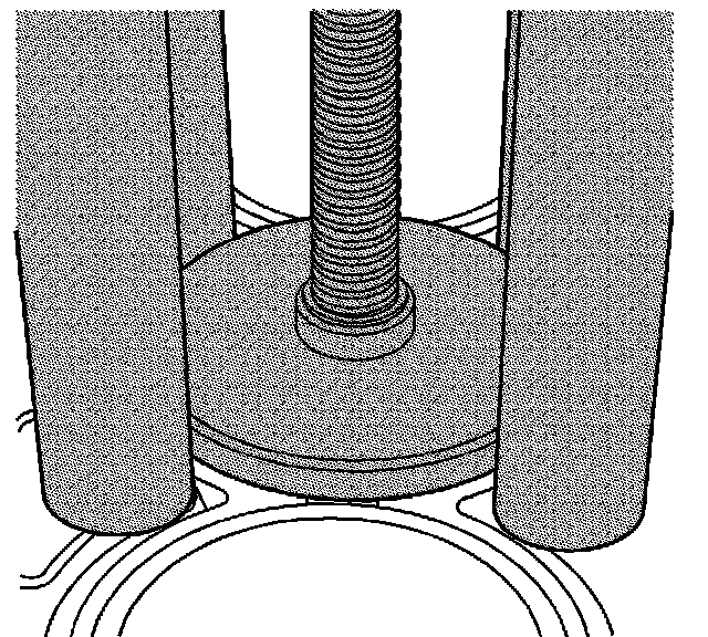 4. Hold the threaded shaft upward in order to retain the shoe alignment to the bottom of the cylinder bore liner. Tighten the nut (1) to the bearing (3).