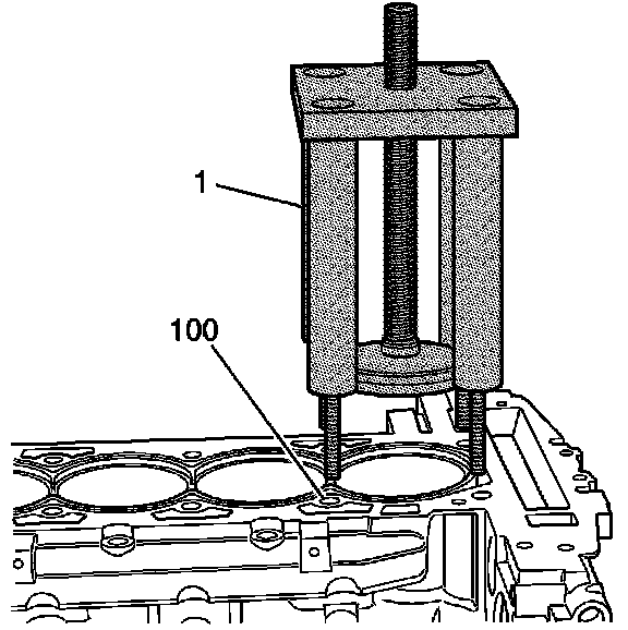 11. Remove the EN 45680-851/EN 45680-853 assembly (1) from the cylinder block (100).