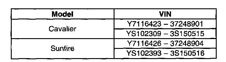 Vehicles built between the VIN breakpoints shown.