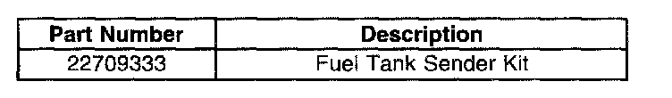 ^ The complete fuel level sender assembly P/N 22683260 is no longer available through GMSPO. This assembly is now serviced by a fuel tank module P/N 88957239 (minus sender) and the fuel tank sender, P/N 22709333. These two parts are no longer sold as one unit and can only be purchased separately.