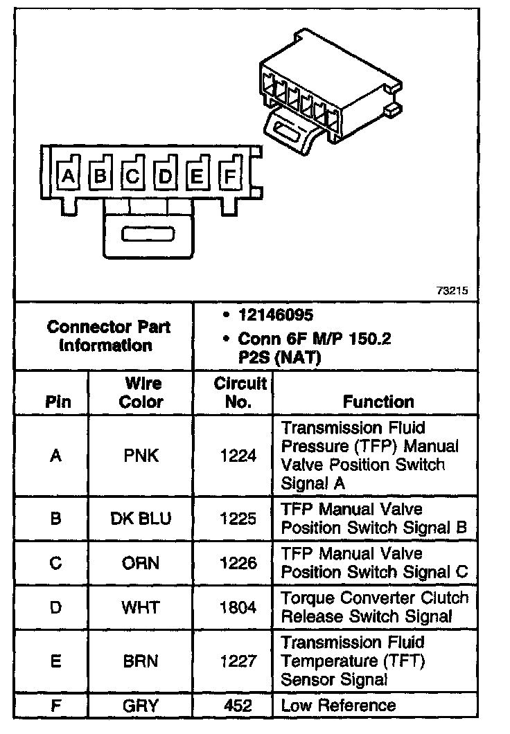 A/T Fluid Pressure Manual Valve Position Switch Connector:
