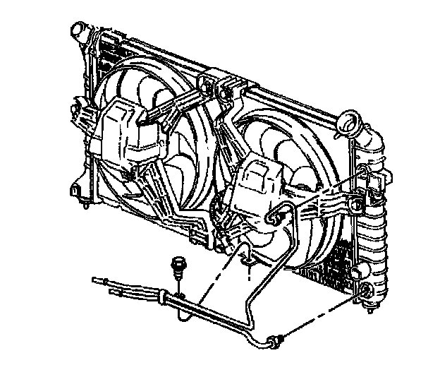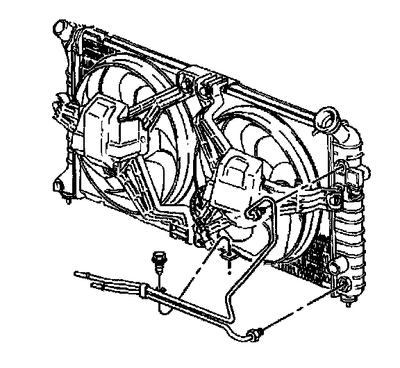 Notice: Allow sufficient clearance around the transaxle oil cooler pipes and around the hoses to prevent damage or wear which may cause fluid loss.