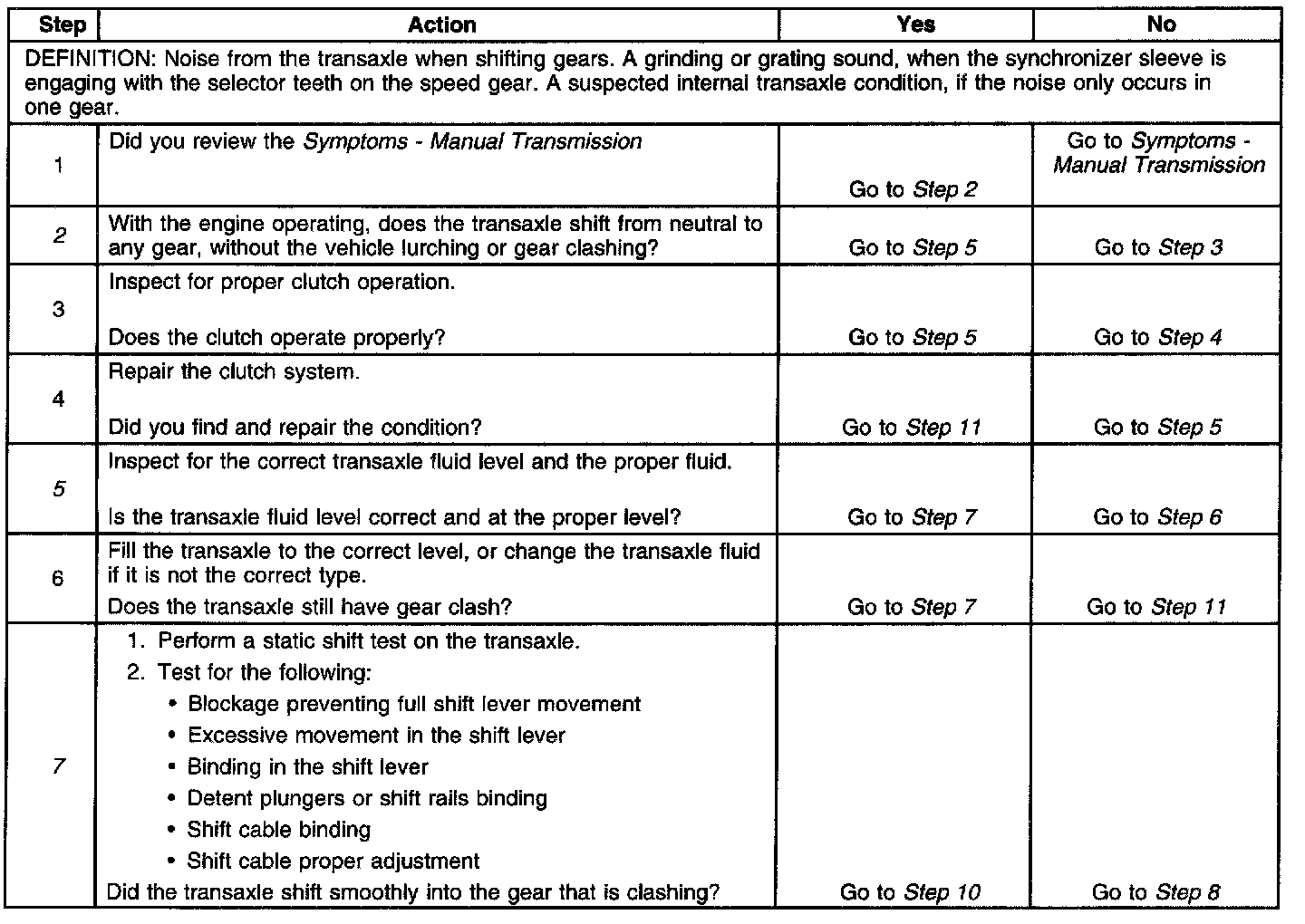 Gear Clash When Shifting GearsSteps 1-7: