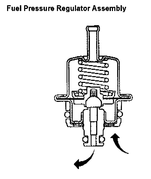 The fuel pressure regulator is a vacuum operated diaphragm relief valve with fuel pump pressure on one side and regulator spring pressure and intake manifold vacuum on the other side. The fuel pressure regulator maintains a constant pressure differential across the injectors at all times. The pressure regulator compensates for engine load by increasing fuel pressure as the engine vacuum drops.