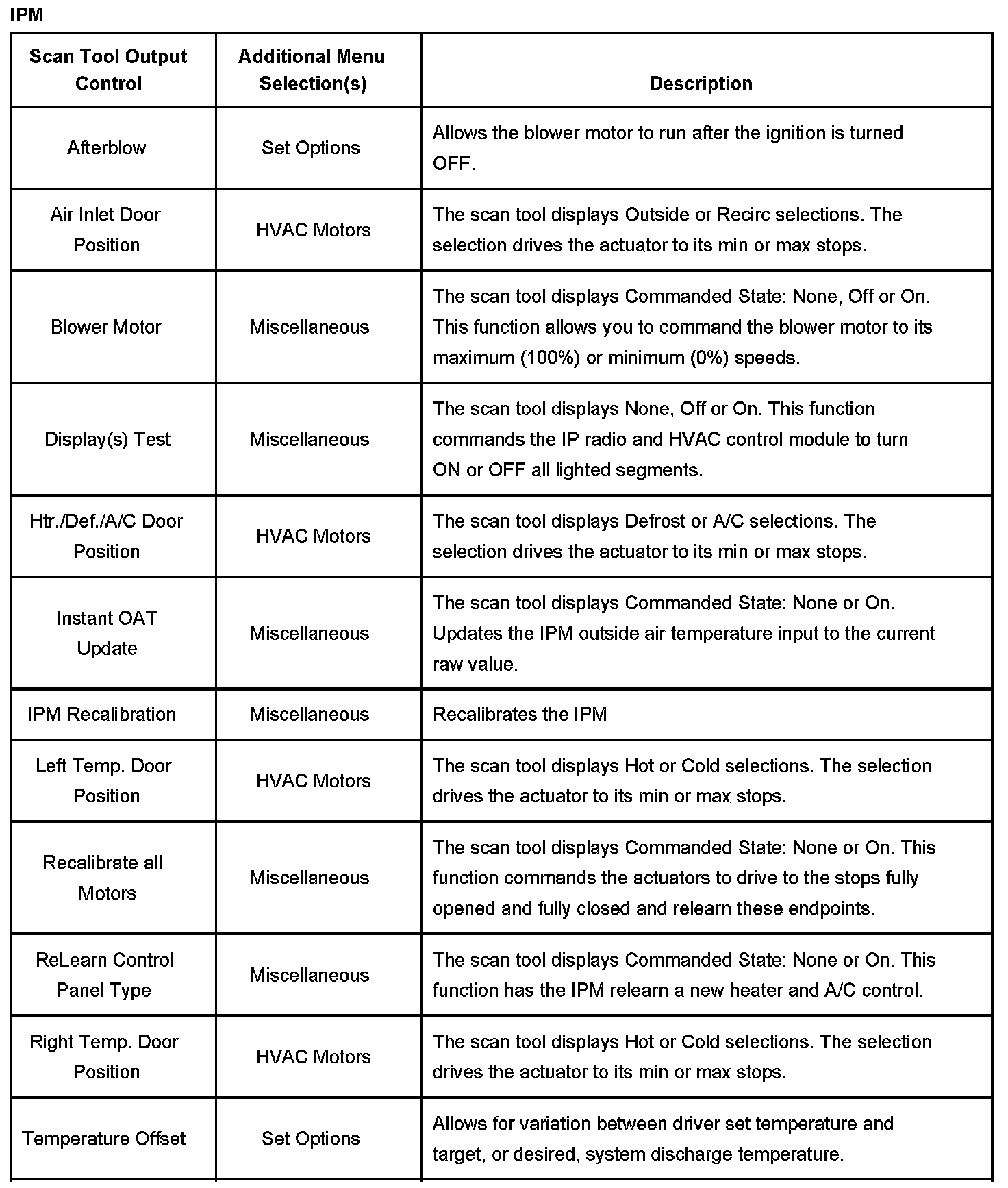 Scan Tool Output Controls - Instrument Panel Module (IPM)