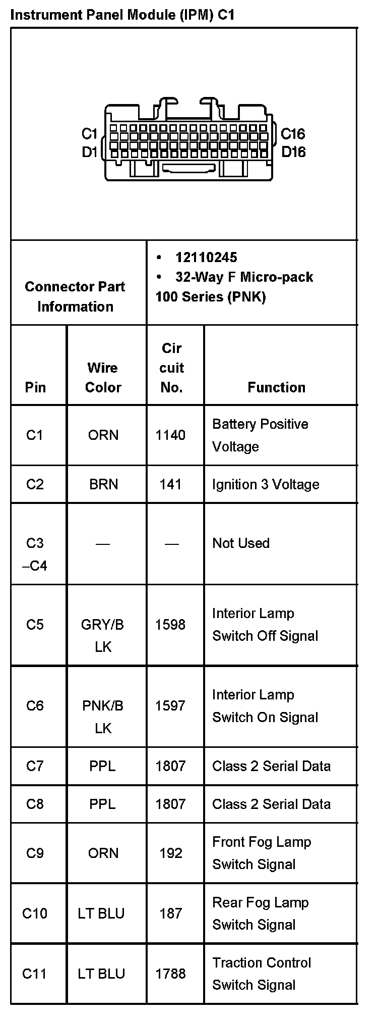 Instrument Panel Module (IPM) C1 Part 2: