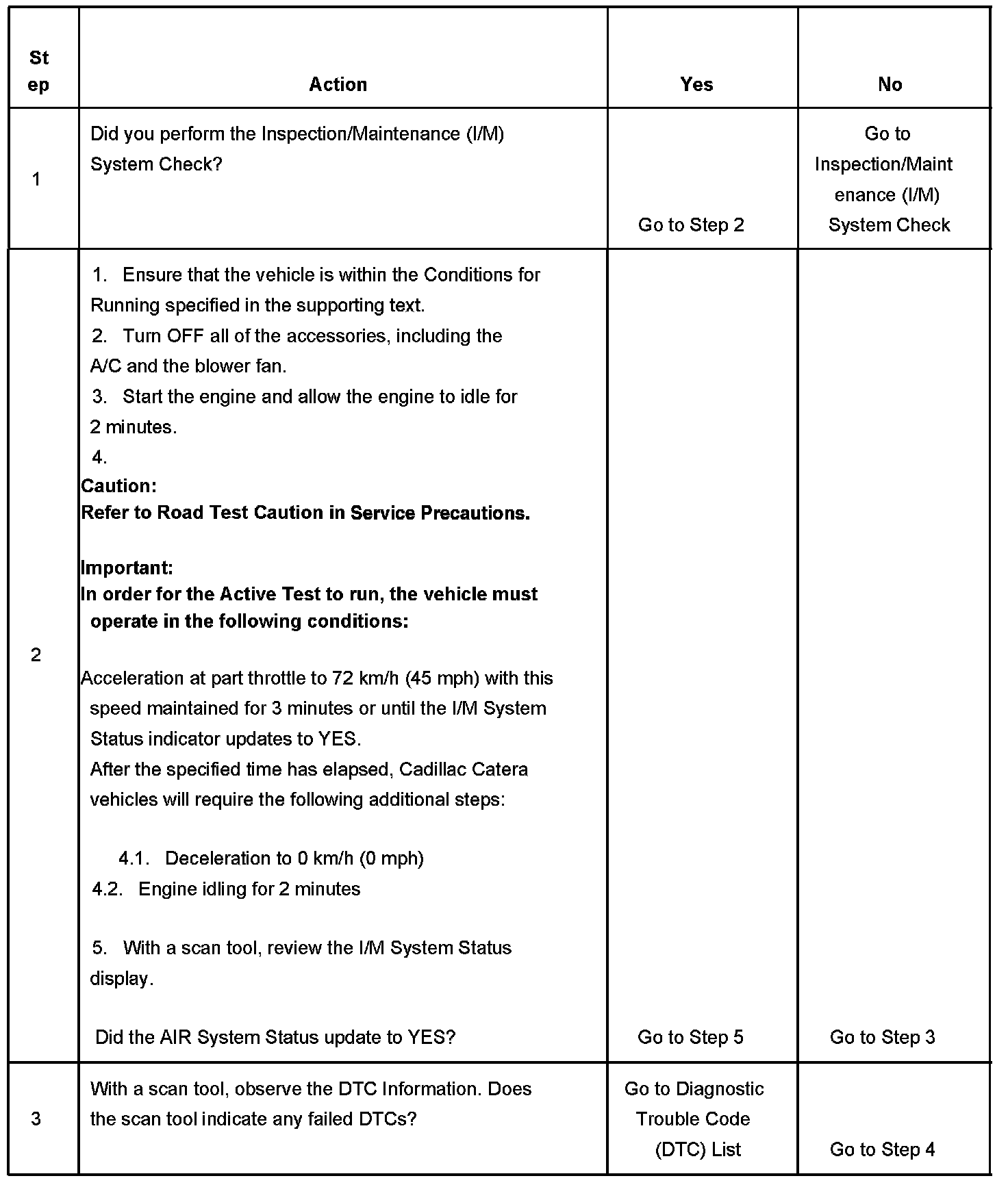 3. This step is to identify a first failure of a type B DTC. A DTC only appears on the I/M System Status display when it becomes a malfunction indicator lamp (MIL) illuminating DTC. This occurs on the second failure of a type B DTC. A first failure of a type B DTC will not allow the I/M System Status to update to YES. Refer to Diagnostic Aids.