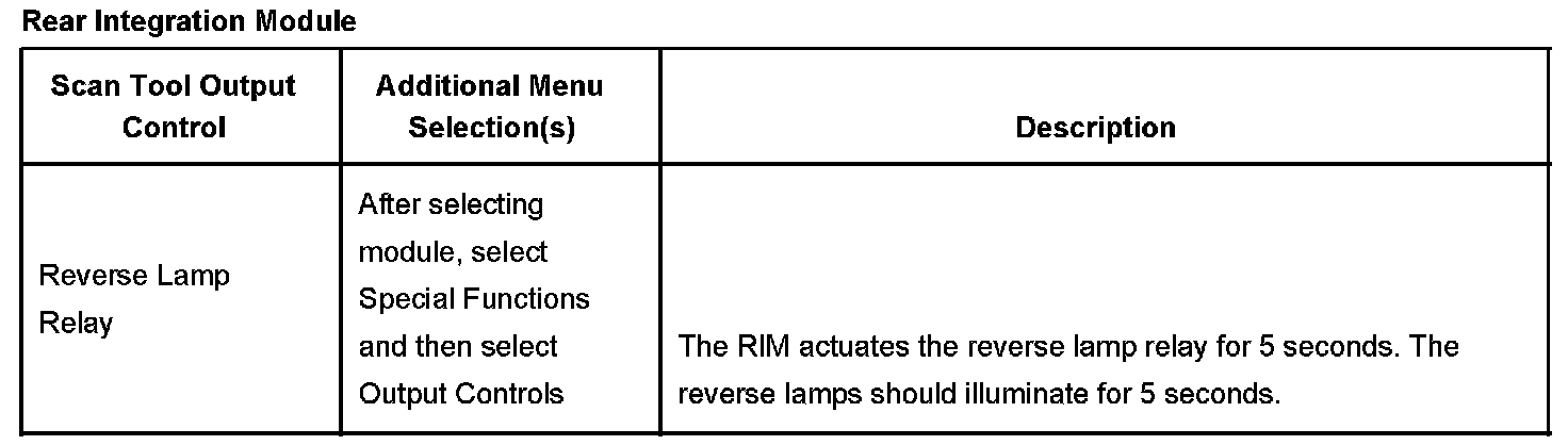 Rear Integration Module Scan Tool Output Control: