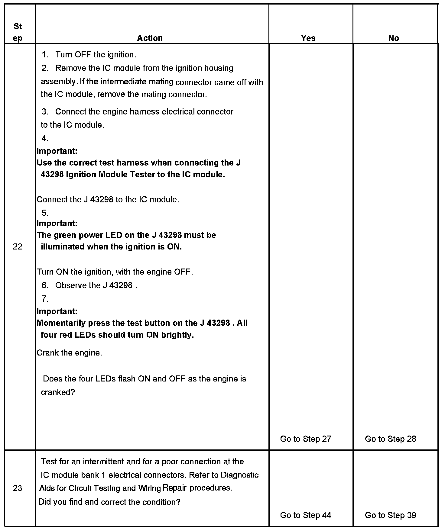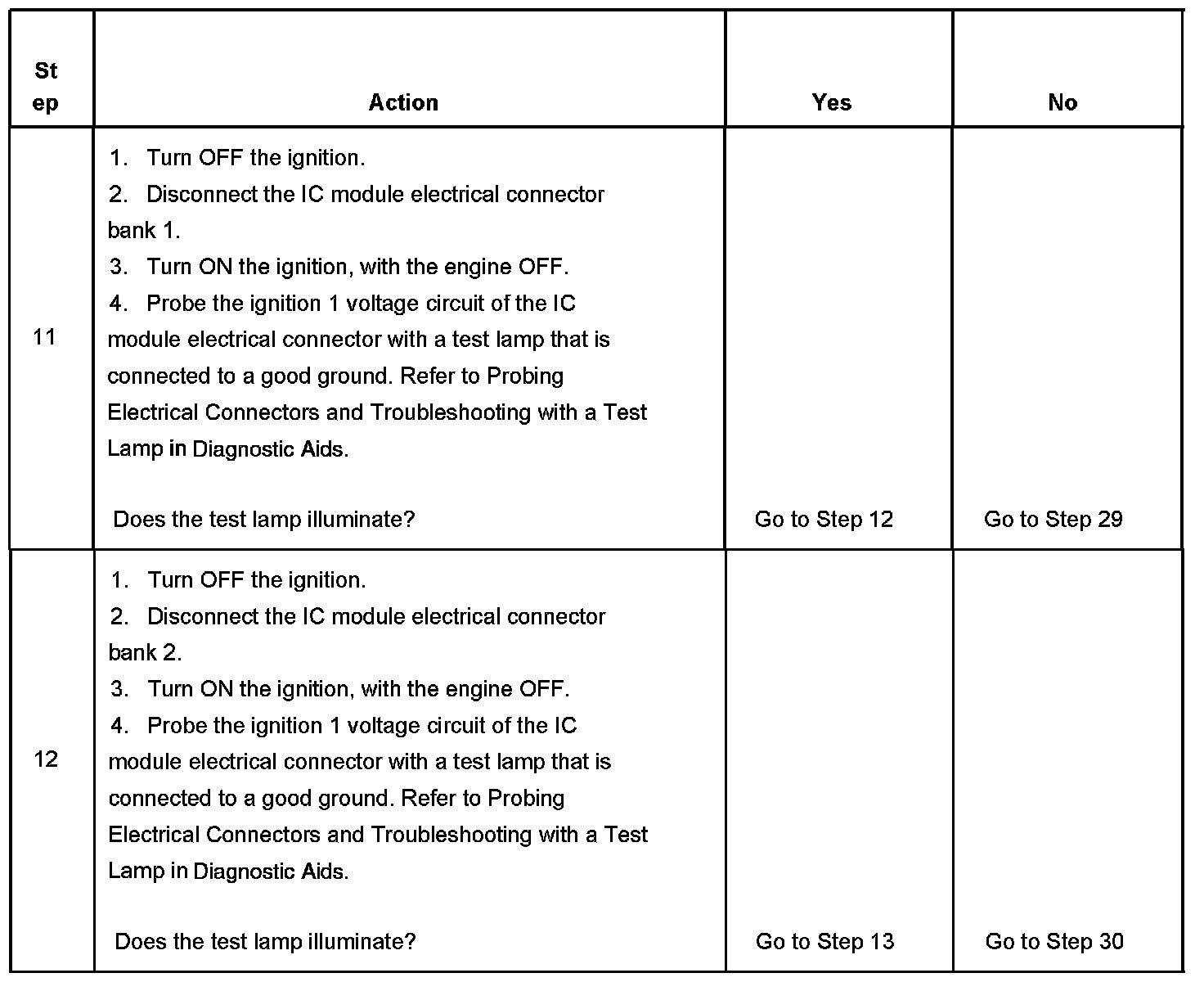 - This Electronic Ignition (EI) System diagnostic table assumes that the vehicle battery is fully charged. Refer to Battery Inspection/Test in Starting and Charging.