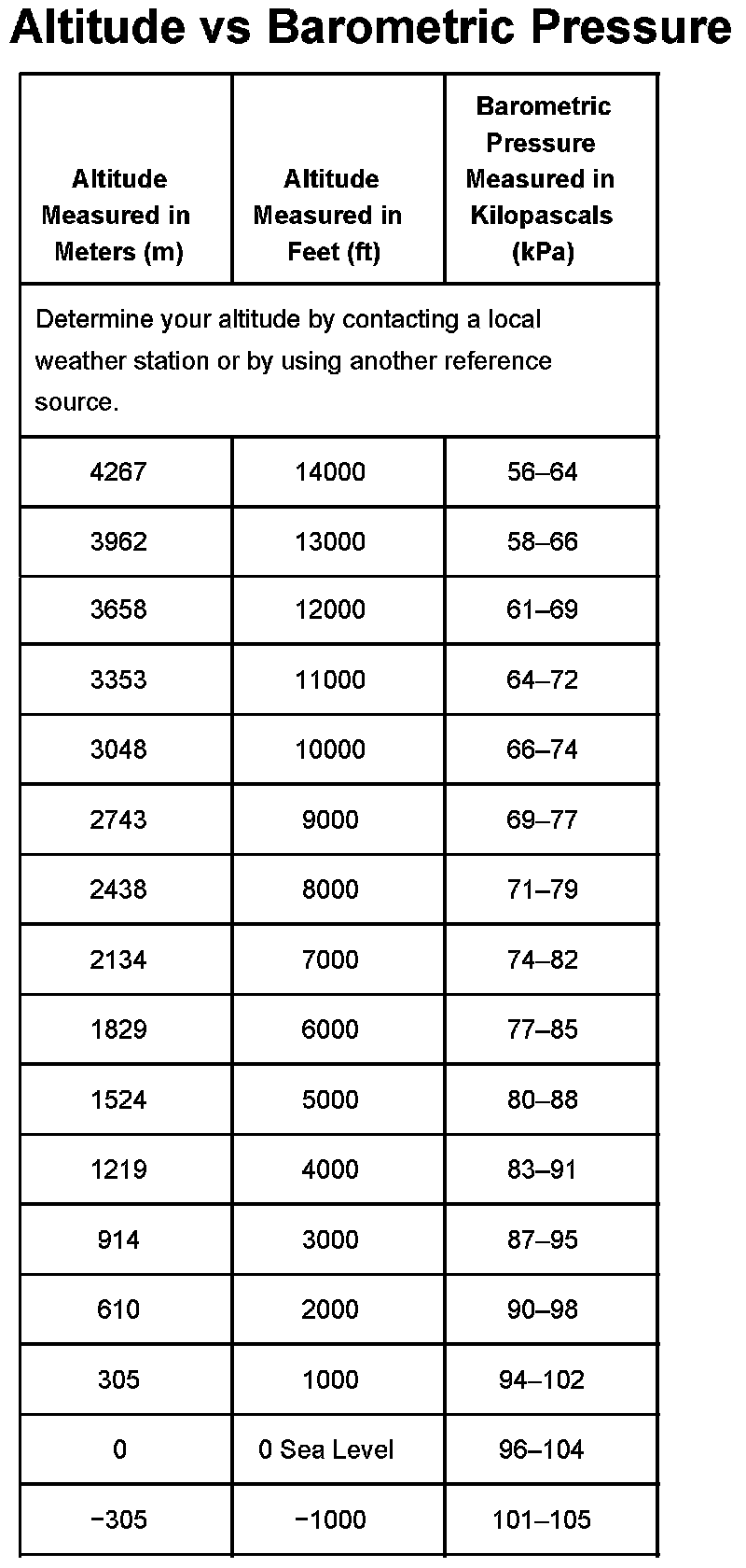 Altitude Vs Barometric Pressure: