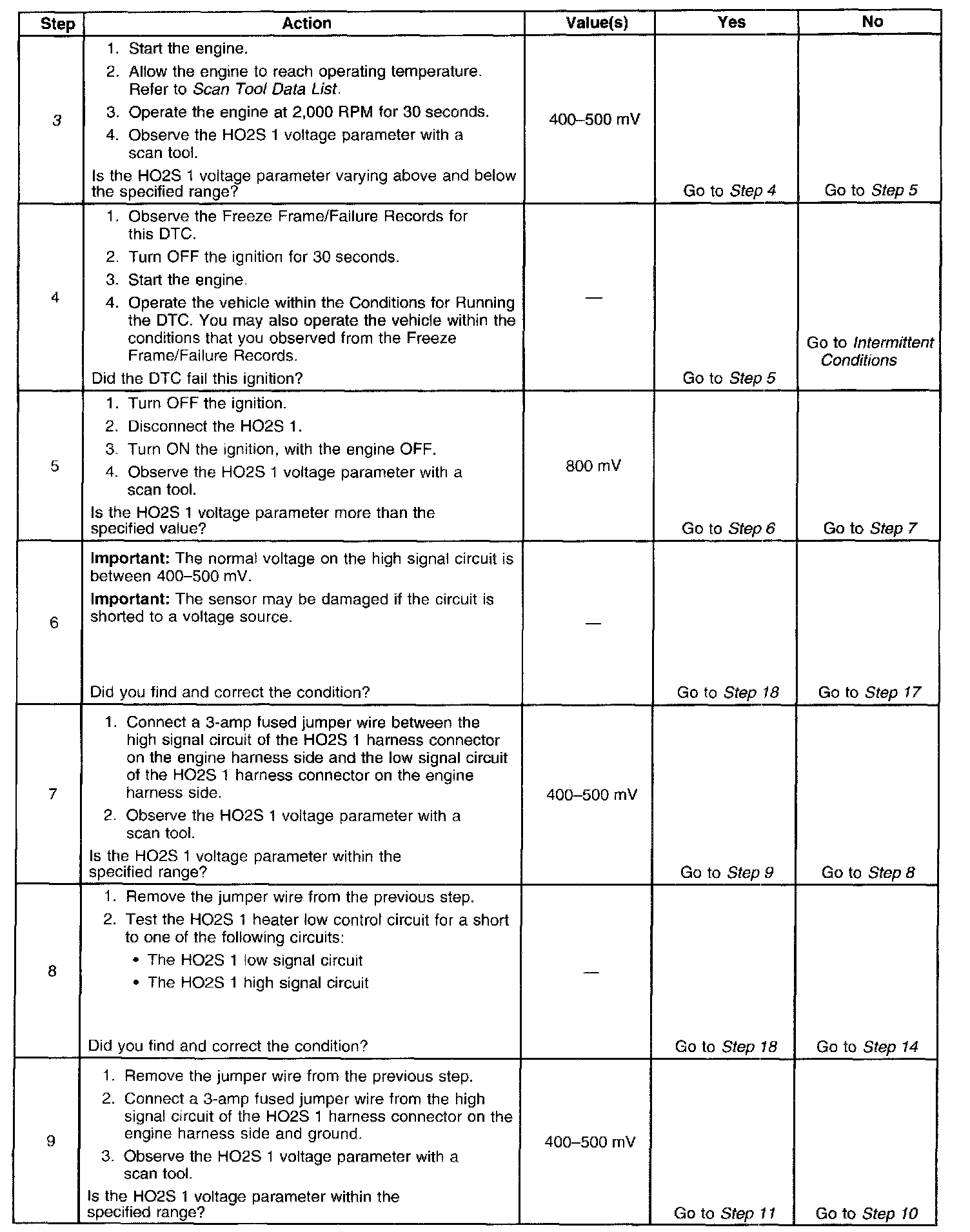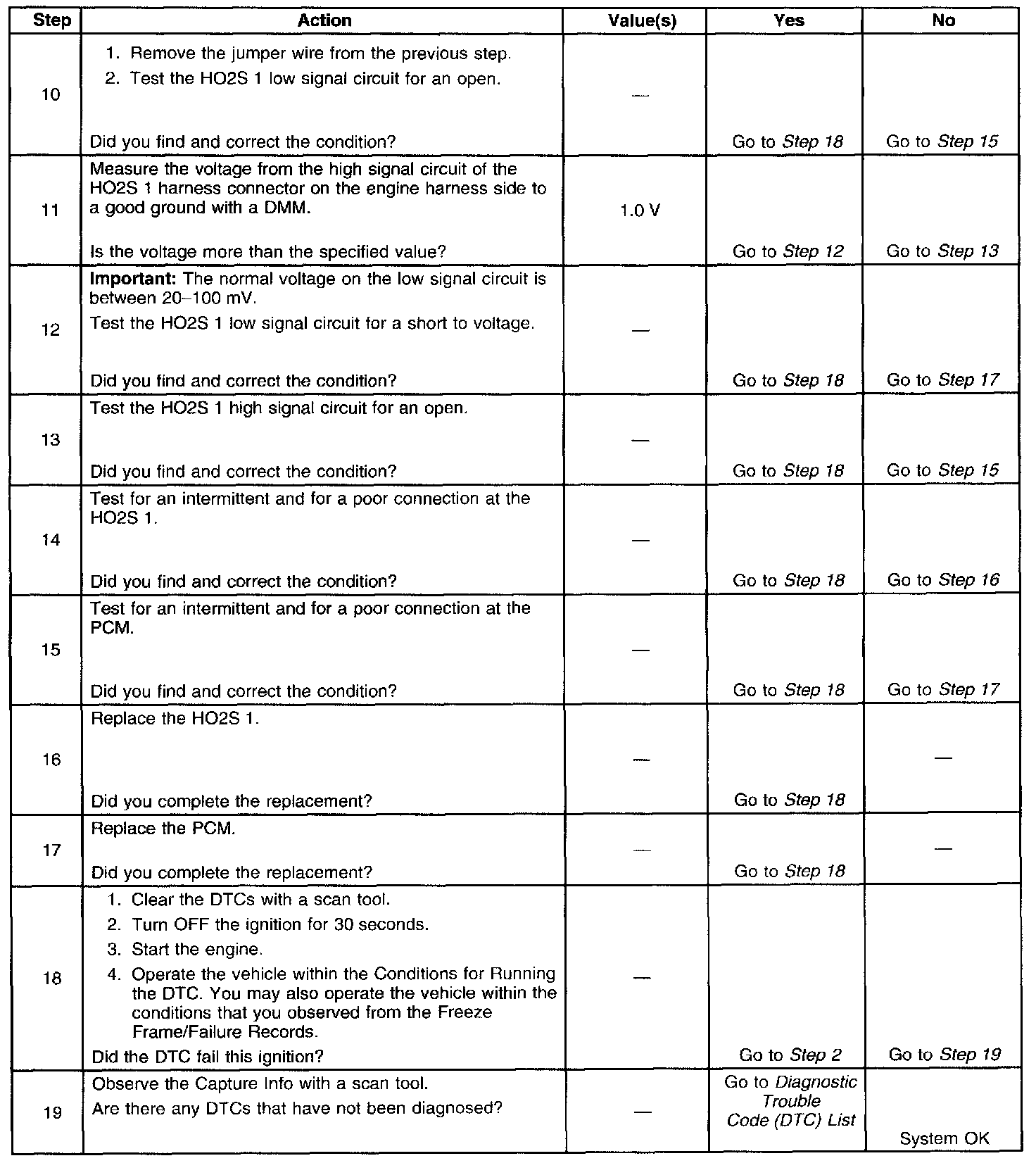 If the PCM detects that the HO2S voltage remains within the bias voltage range, DTC P0134 will set.