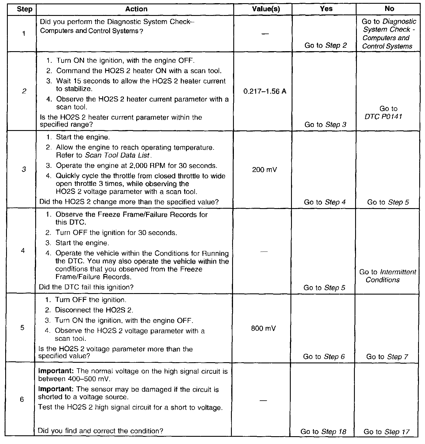 If the PCM detects that the HO2S voltage remains within the bias voltage range, DTC P0140 will set.