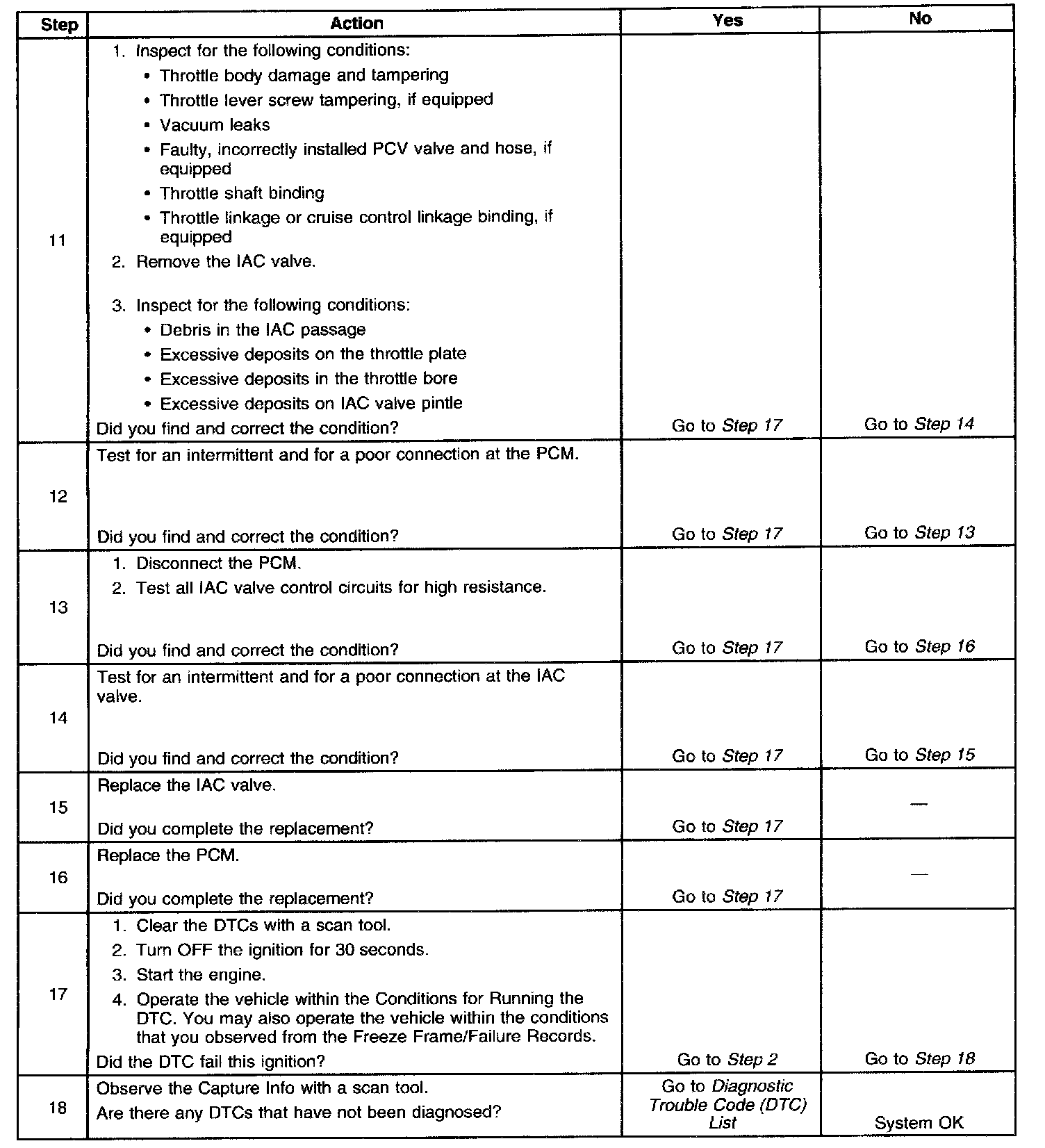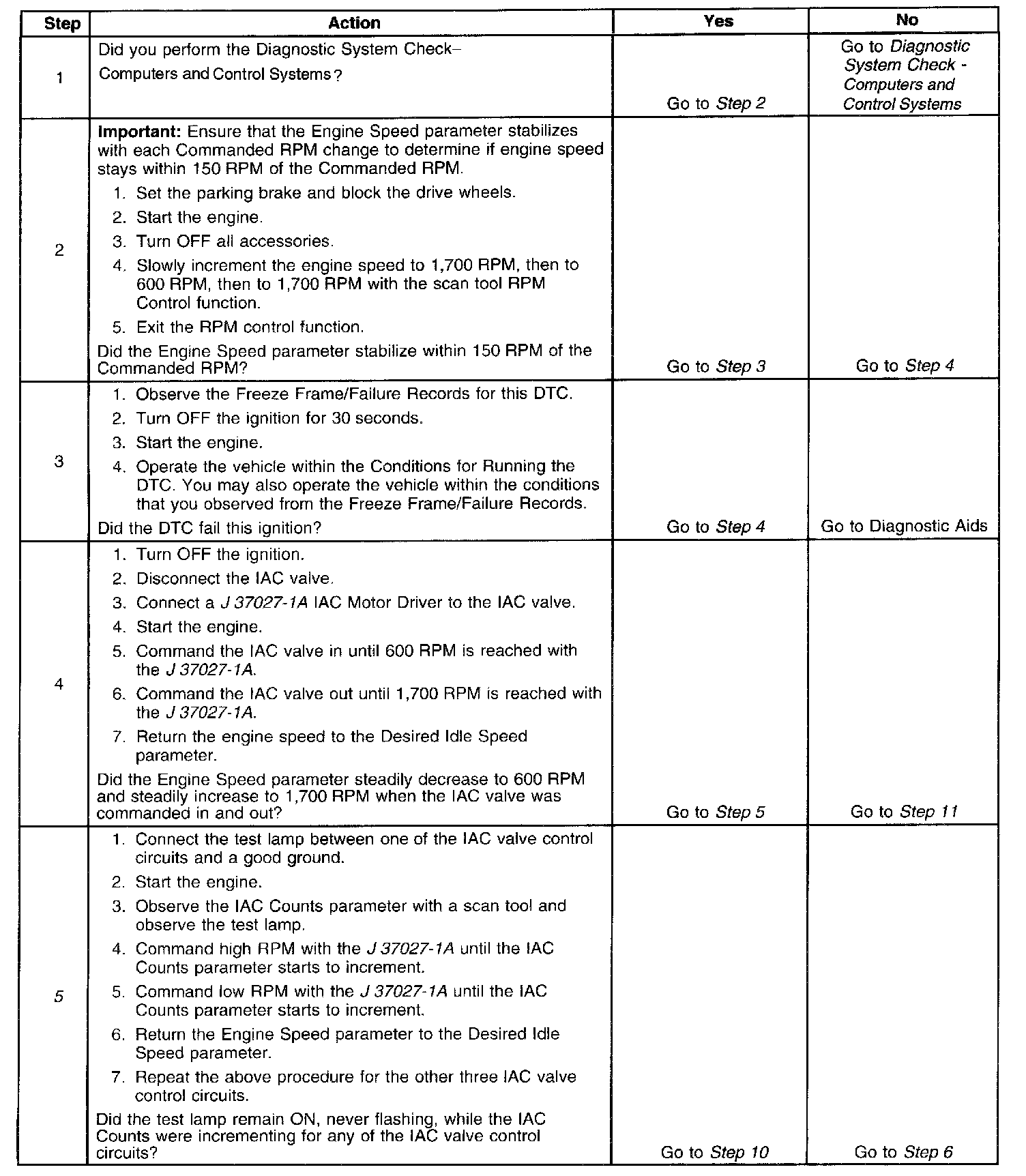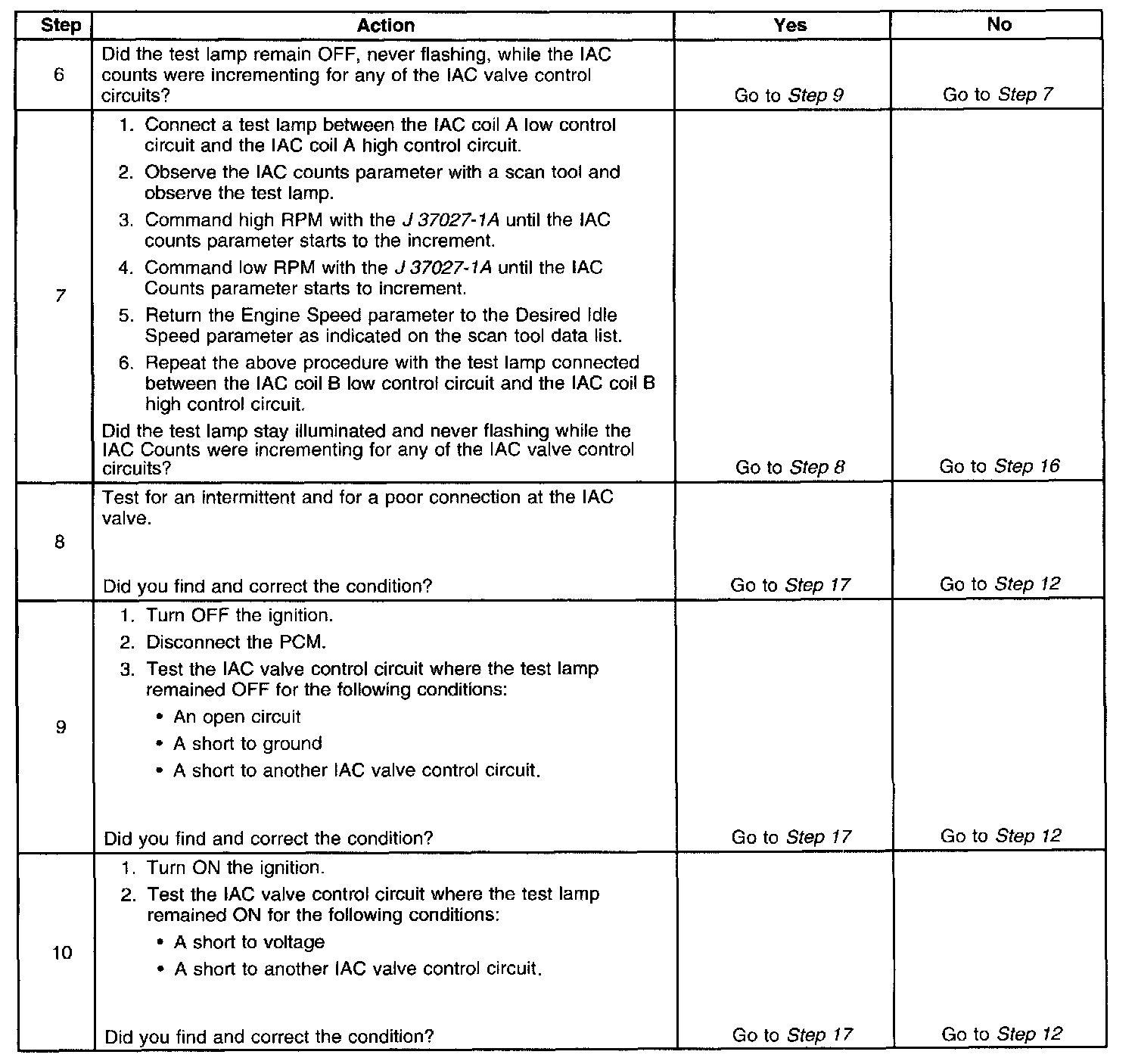 5. This test will determine the ability of the PCM and IAC valve control circuits to control the IAC valve.