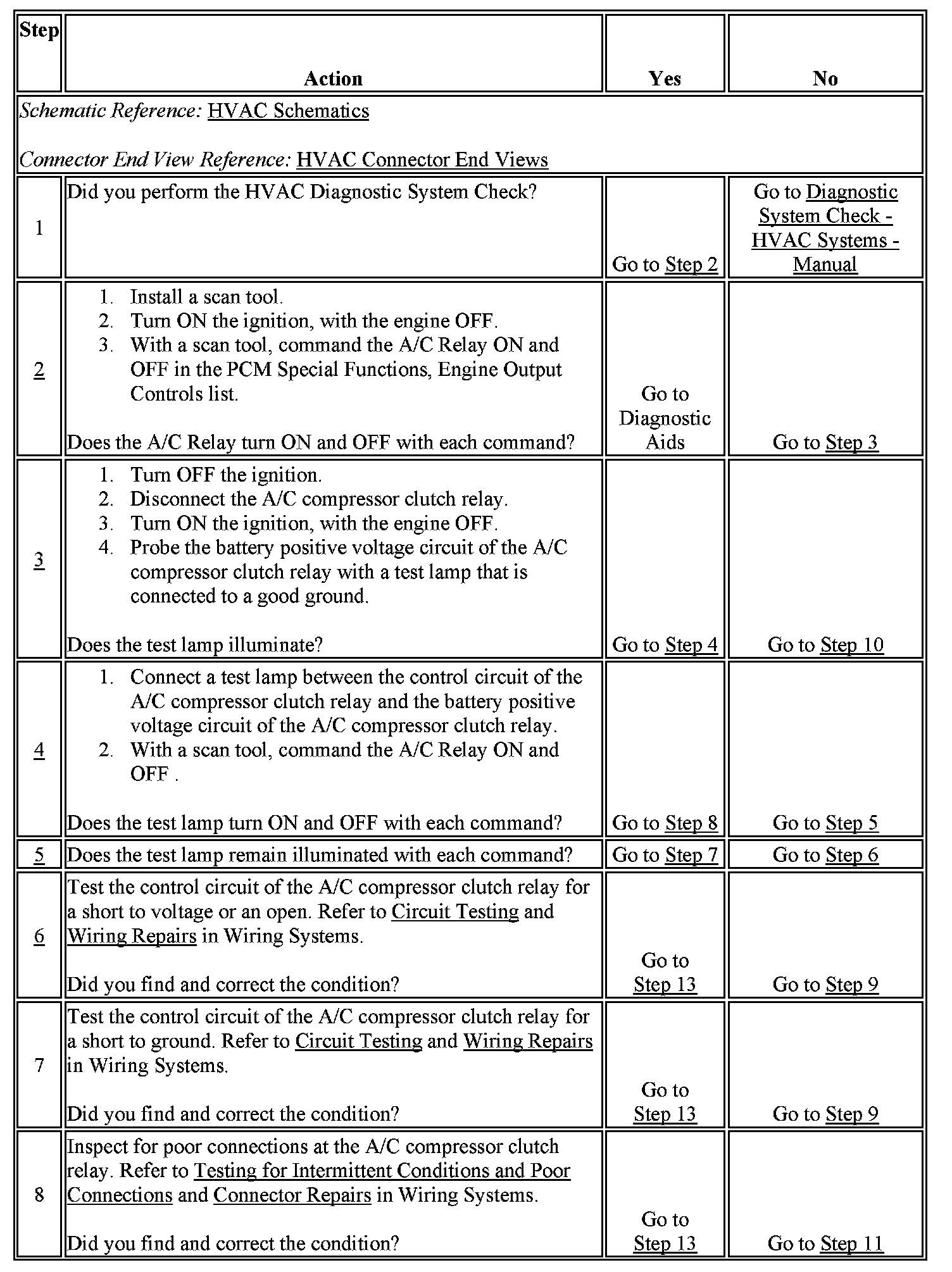 - The PCM detects an improper voltage level on the output circuit that controls the A/C relay.