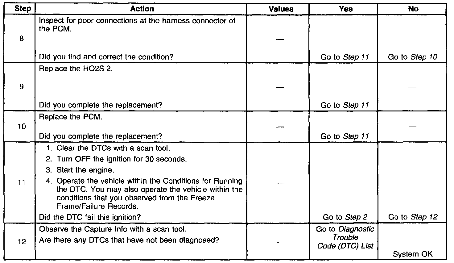 - A current DTC, Last Test Failed, clears when the diagnostic runs and passes.