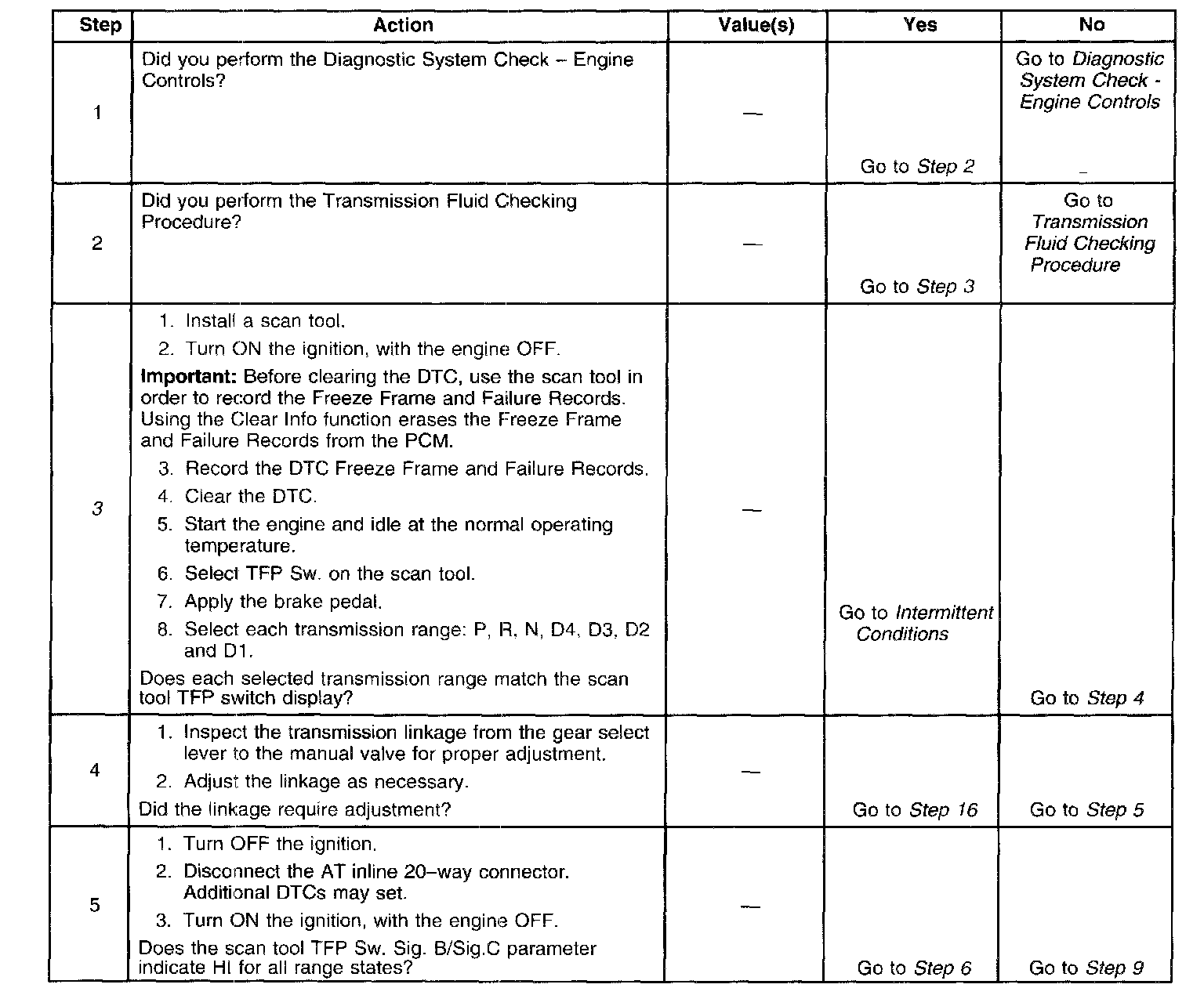 3. This step tests the indicated range signal to the manual valve range actually selected.